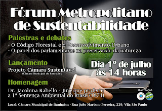 A União dos Vereadores da Baixada Santista convida a todos para participar do Fórum Metropolitano de Sustentabilidade. Sua presença é muito importante!